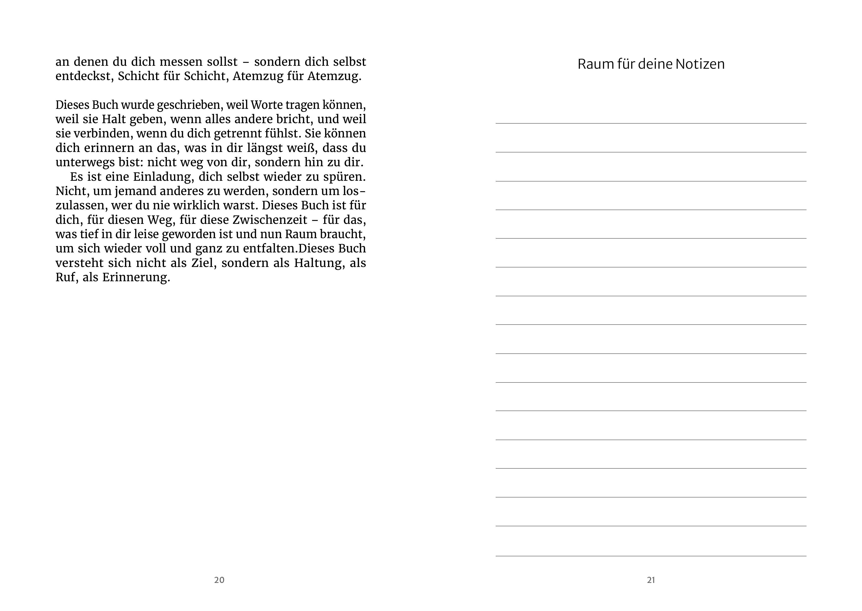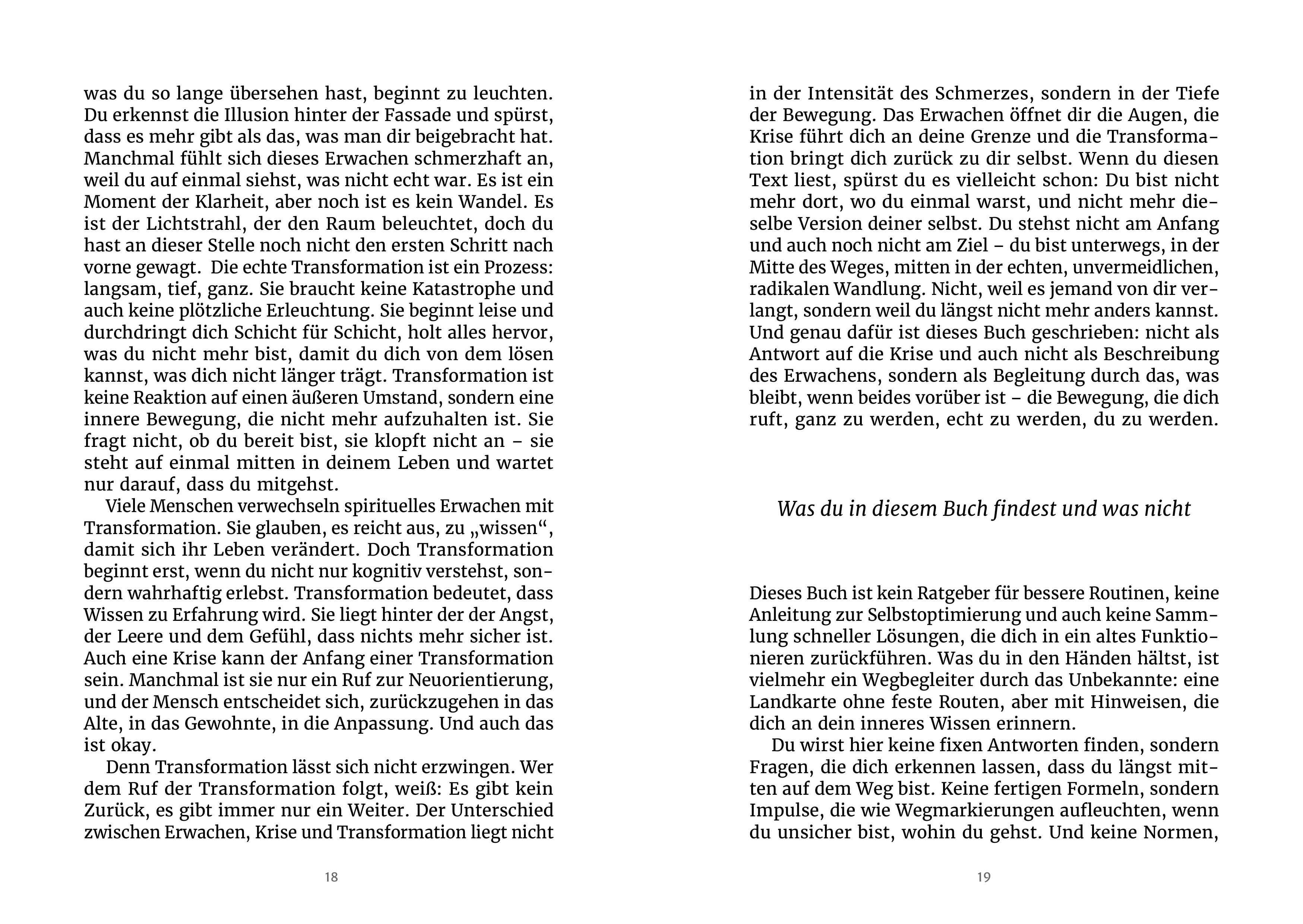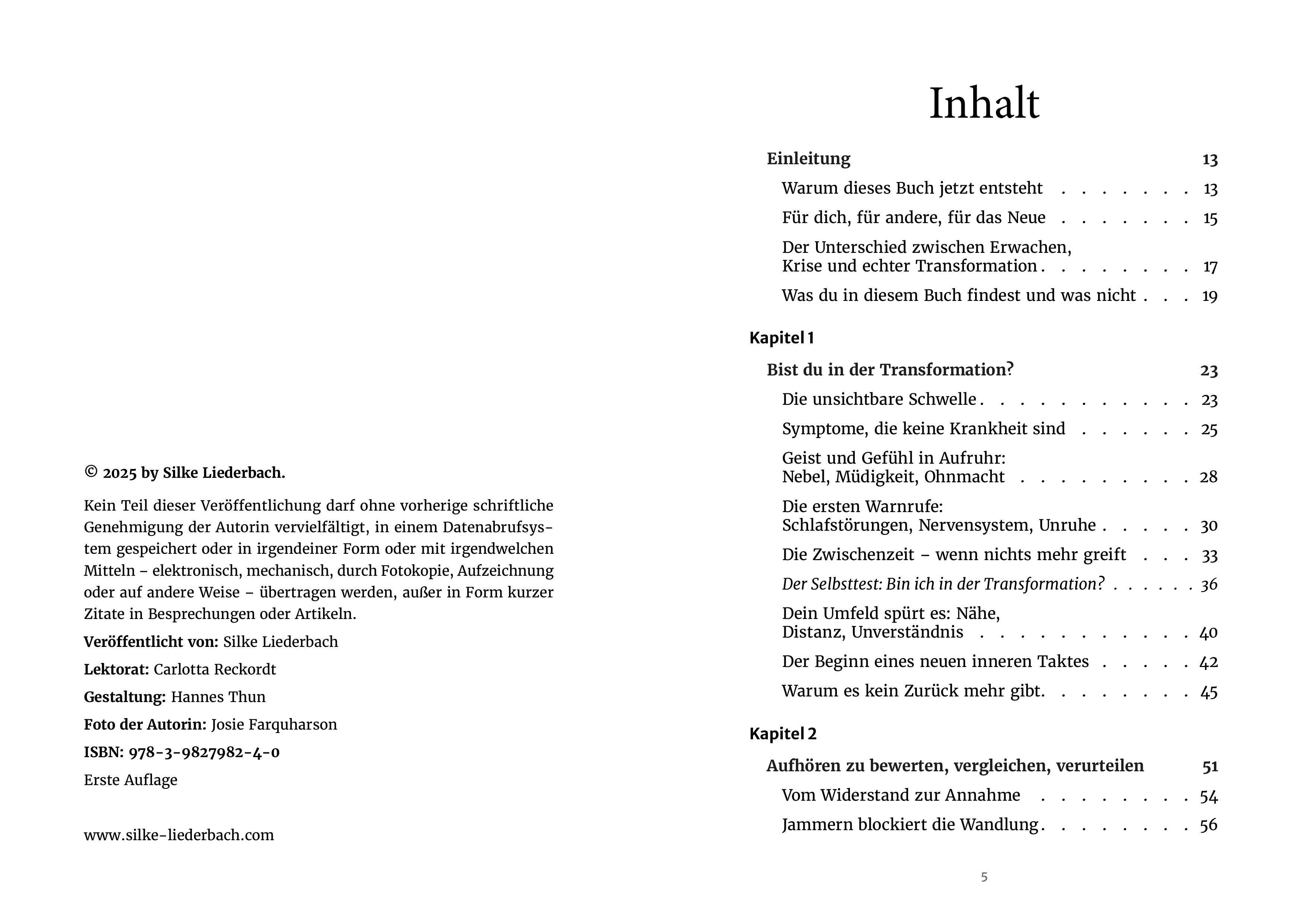 Silke Liederbach invites you to interpret transformation not as failure or illness, but as a deep movement back to one's own truthfulness. The book does not offer quick solutions to work against symptoms, but finds words and images for an in-between time that provides support, gives orientation, and makes the invisible tangible.